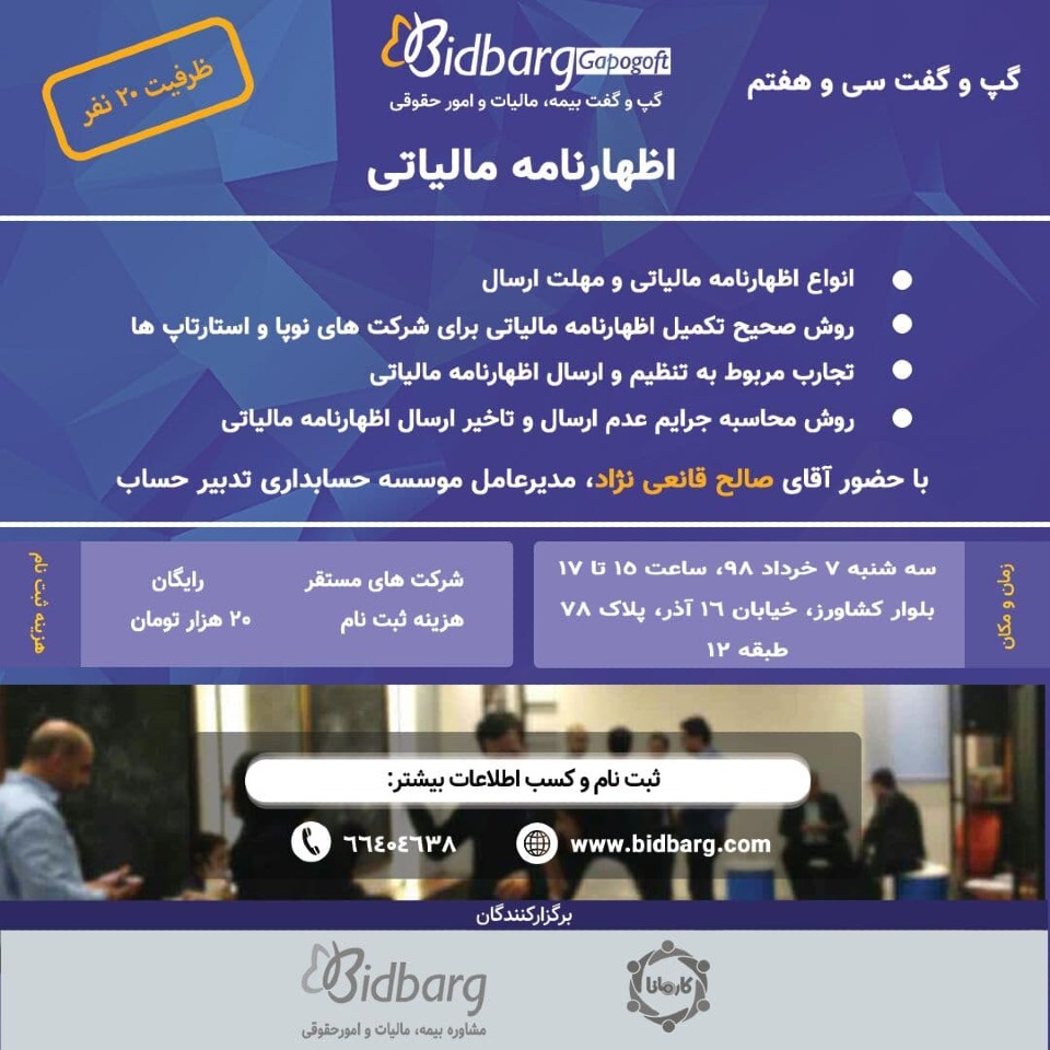 - تجارب مربوط به تنظیم و ارسال اظهارنامه مالیاتی