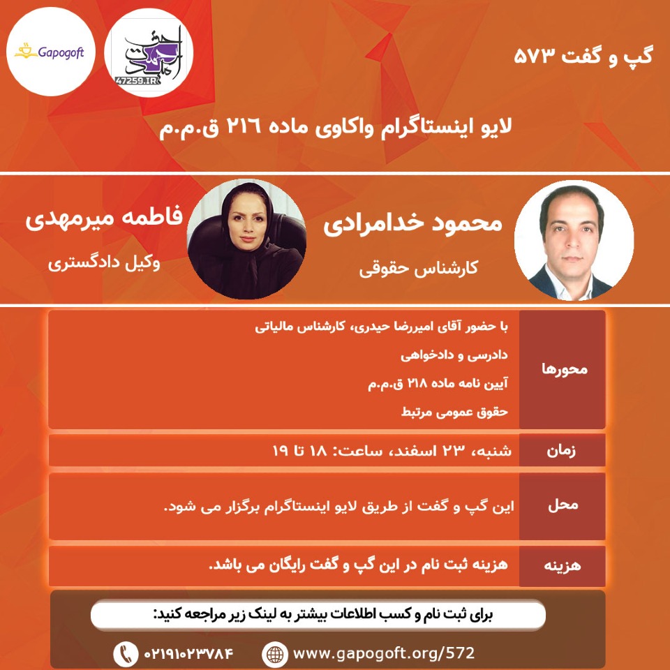 گپ و گفت - حضوری | شنبه ۲۶ بهمن 1398 ساعت 17:00