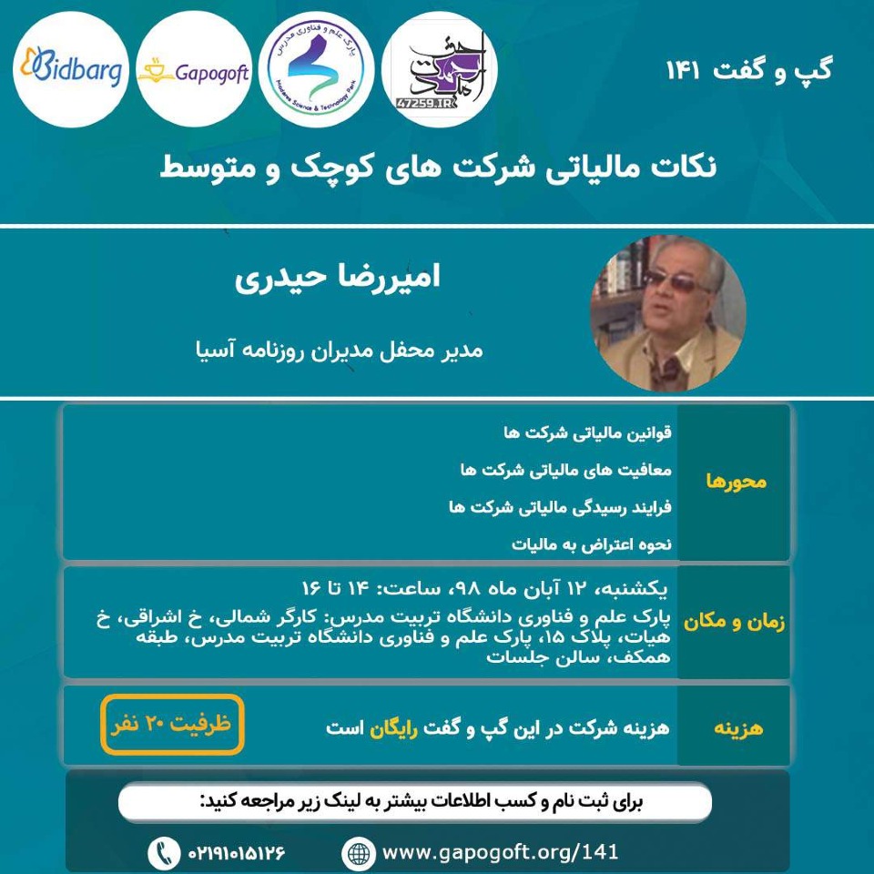گپ و گفت - حضوری | سهشنبه ۵ آذر 1398 ساعت 15:00
