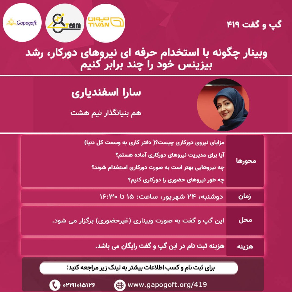 گپ و گفت - وبیناری | دوشنبه ۲۴ شهریور 1399 ساعت 14:00