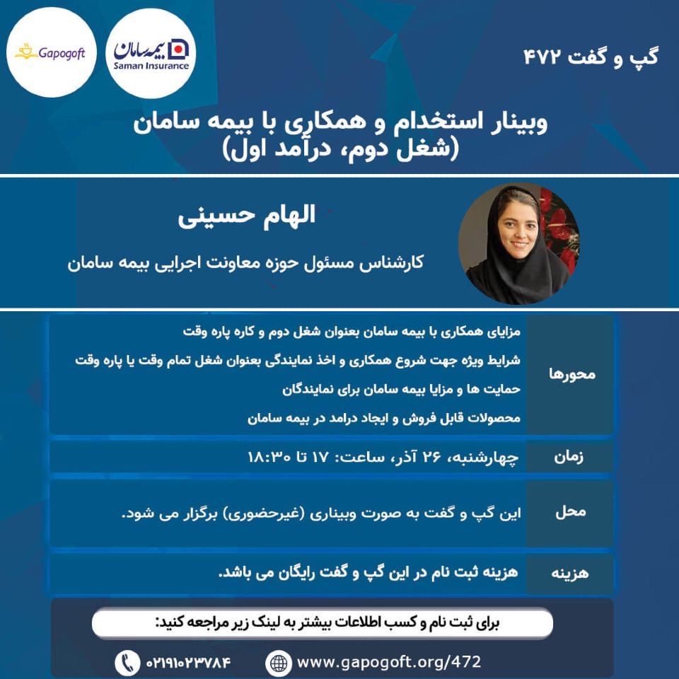 استخدام و همکاری با بیمه سامان (شغل دوم، درآمد اول)