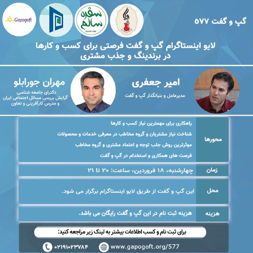 گپ و گفت - وبیناری | شنبه ۱۸ اردیبهشت 1400 ساعت 21:00