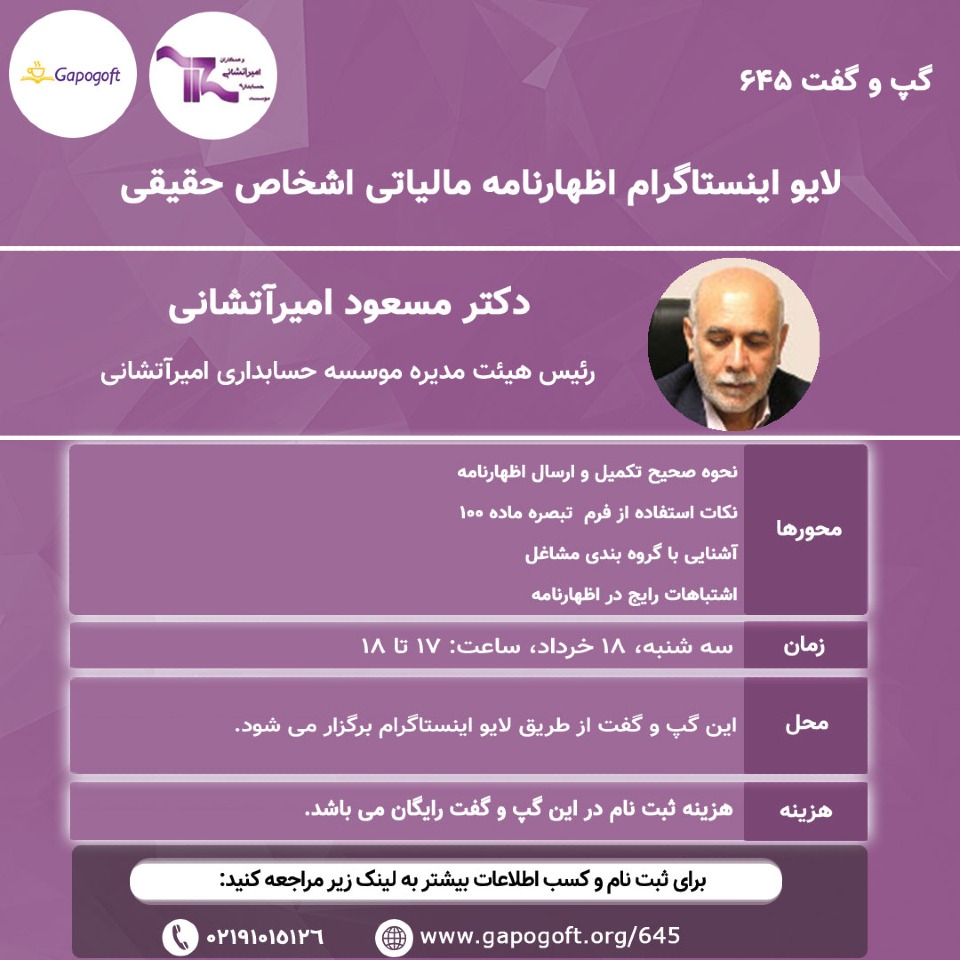 کارگاه آموزش اظهارنامه مالیاتی ۹۹