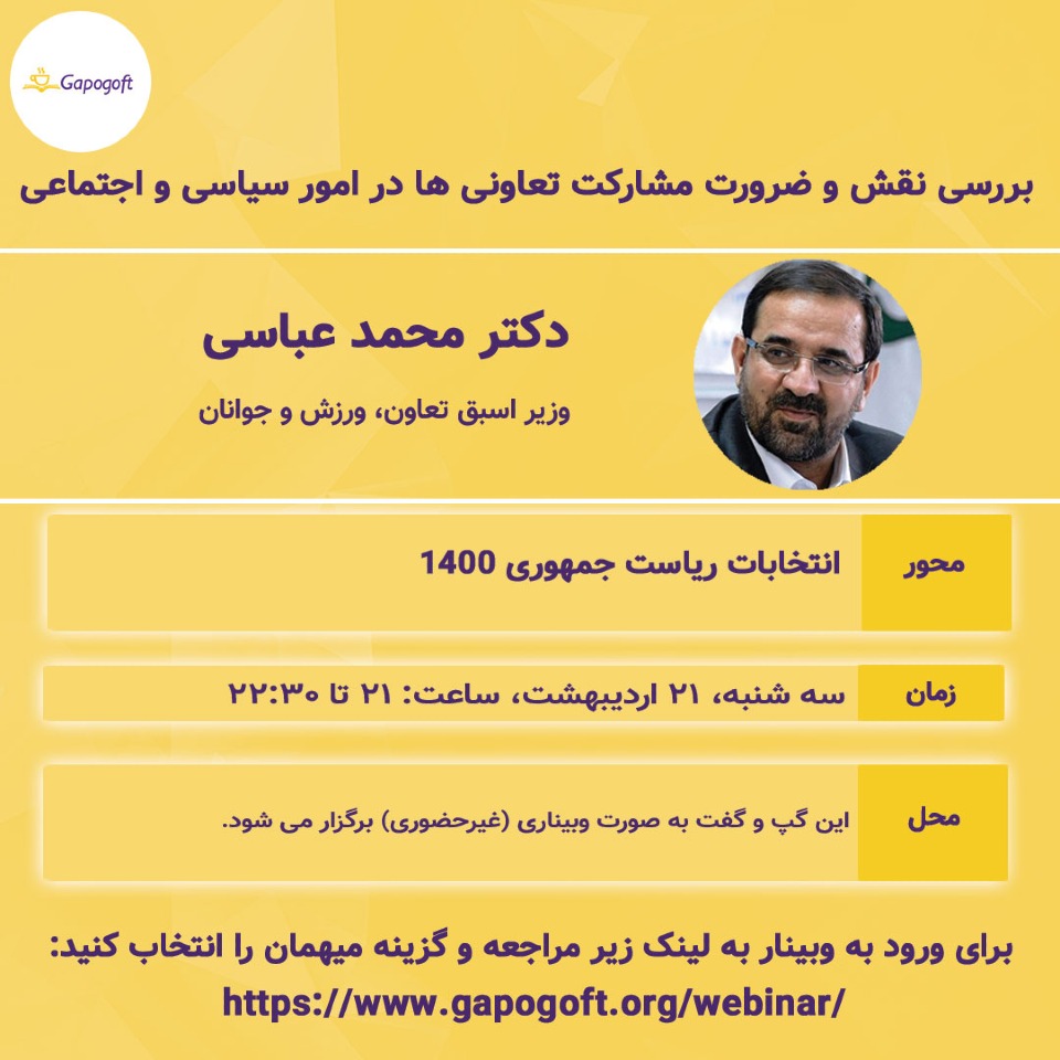 گپ و گفت - وبیناری | سهشنبه ۳۱ فروردین 1400 ساعت 17:00