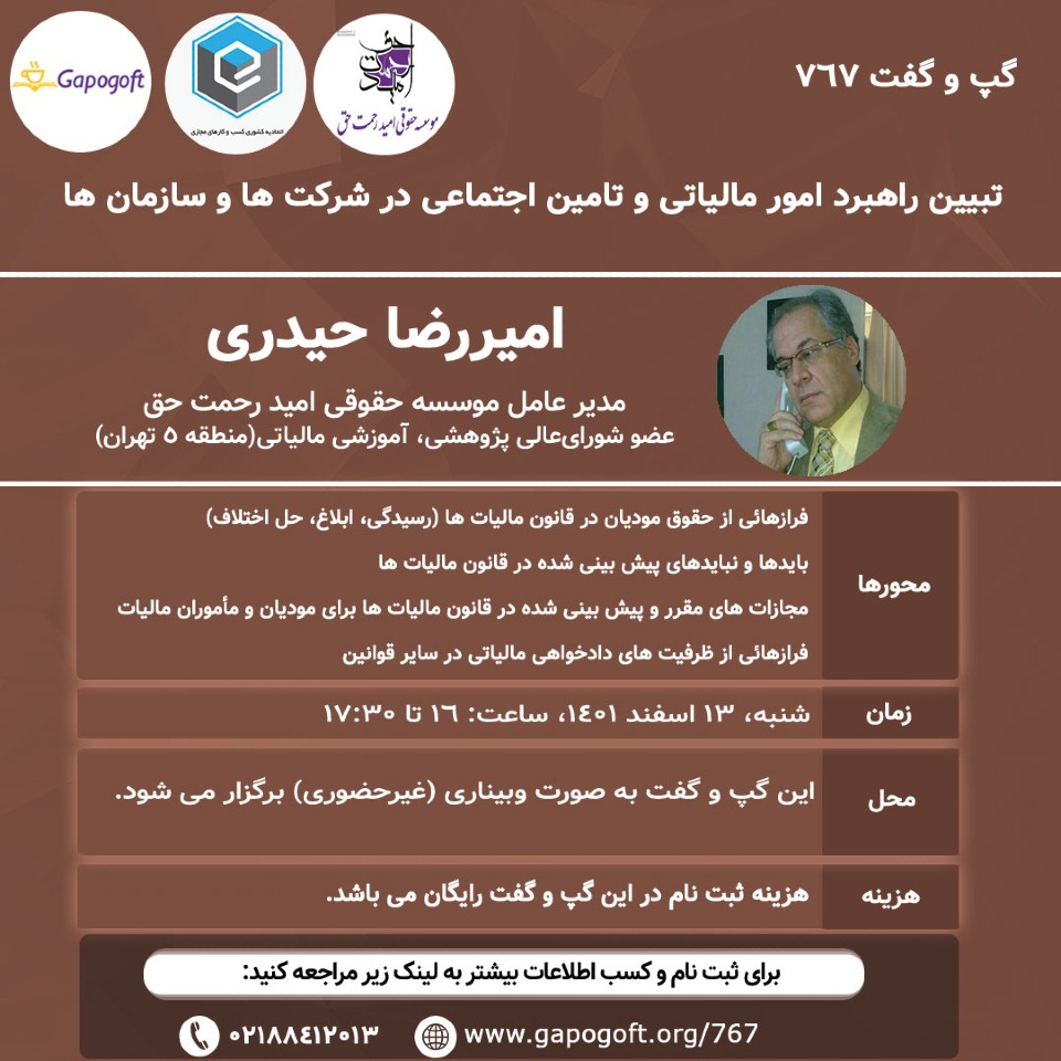 تبیین راهبرد امور مالیاتی و تامین اجتماعی در شرکت ها و سازمان ها