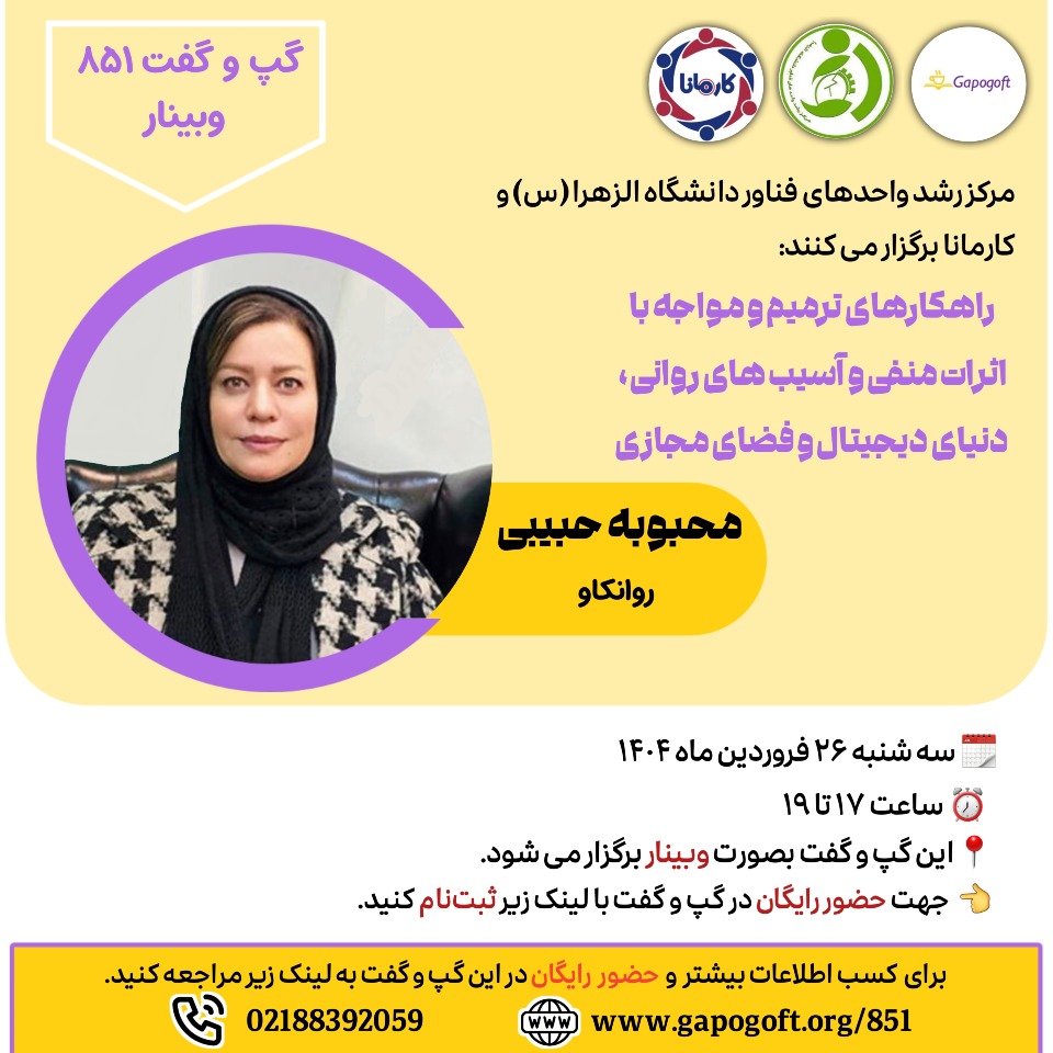 گپ و گفت - وبیناری | سهشنبه ۲۶ فروردین 1404 ساعت 17:00
